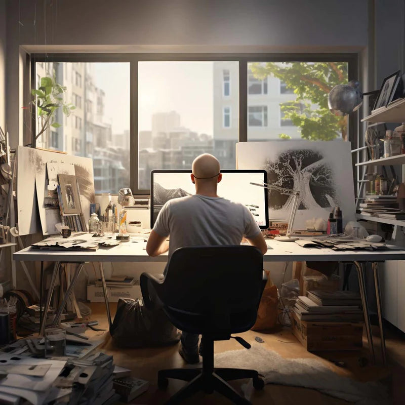 I live my days chasing the sun's arc as it spills over Paseo del Prado, infusing my works with light that dances and plays like the reflections on the Fuente de Cibeles. My nights are a symphony of clinking glasses, the murmur of evening revelers, and the hum of my equipment as I give life to dreams in digital form.